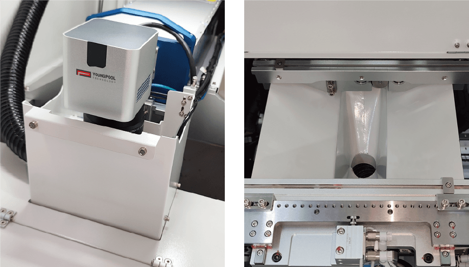 본 장비는 표준 60W 녹색 레이저를 탑재하여 고속 및 정밀 절단이 가능하며, 인라인 및 오프라인 작동 모드를 모두 지원하여 다양한 생산 환경에 유연하게 적용할 수 있습니다. 또한, 폭이 0.8미터 미만인 컴팩트한 디자인으로 생산 라인 공간을 효율적으로 활용할 수 있습니다.